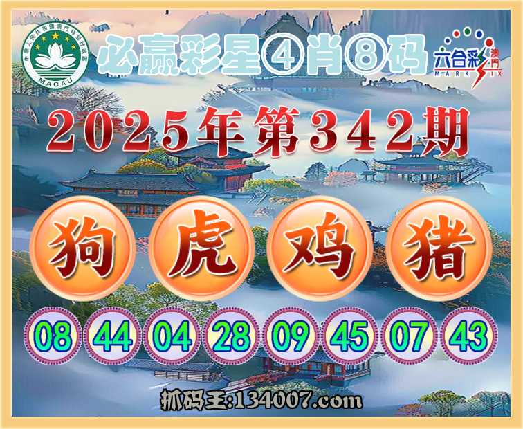342期:【必赢彩星】 🤡④肖⑧码🤡【狗虎鸡猪】开:虎04准
